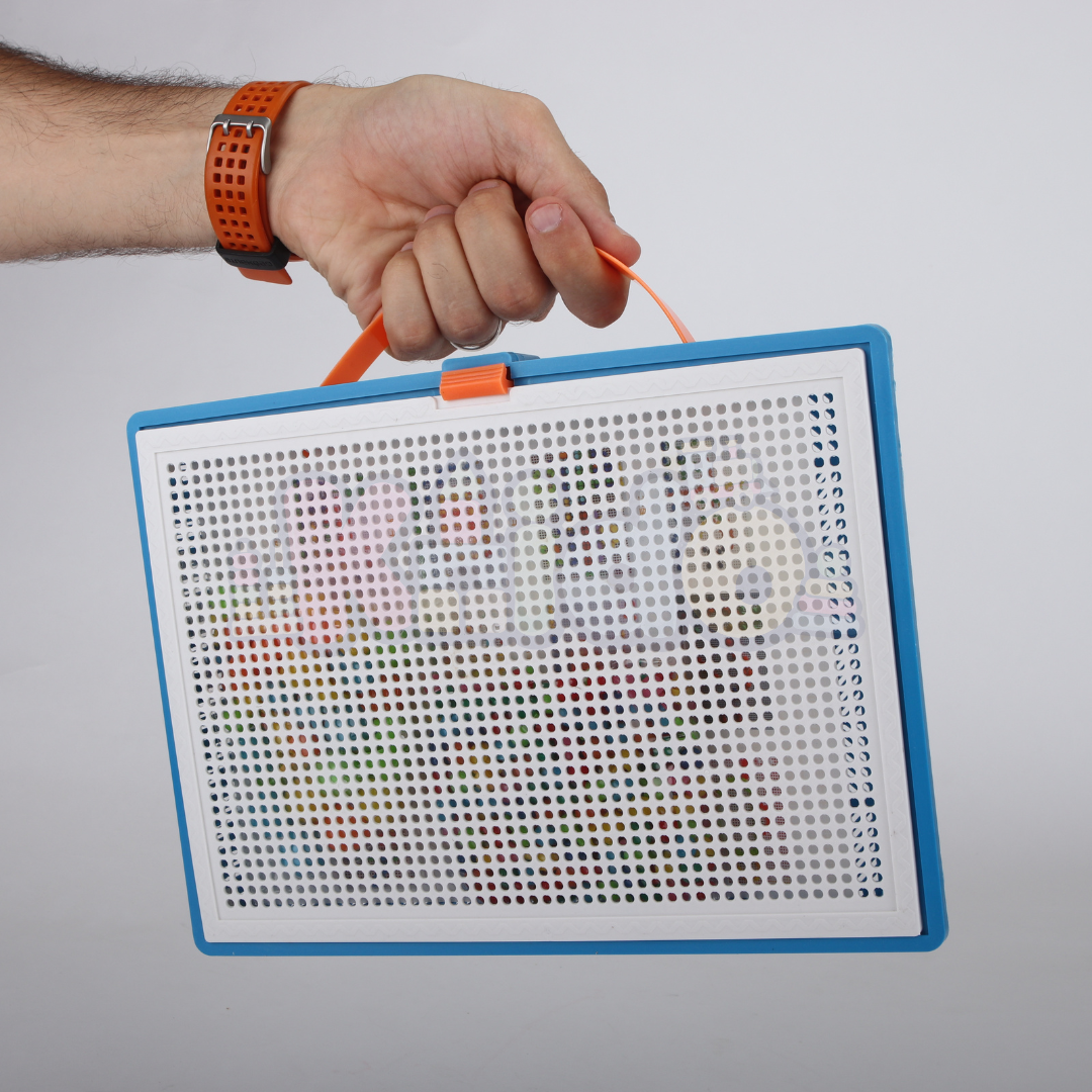 L'univers de créativité est un puzzle unique en son genre. Il comprend une planche perforée et des épingles de différentes couleurs et tailles pour personnaliser ses créations ou reproduire les formes disponibles dans le guide.