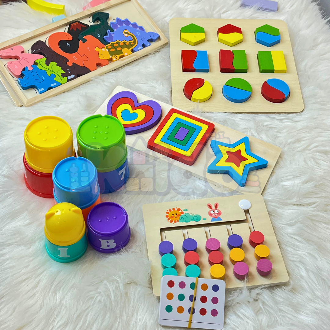 مجموعة 5 ألعاب تعليمية متكاملة، تم إختيارها بعناية لتشجيع أطفالكم على حل المشكلات بطريقة منطقية، تحسين تركيزهم، وتعزيز صبرهم في صغر سنهم