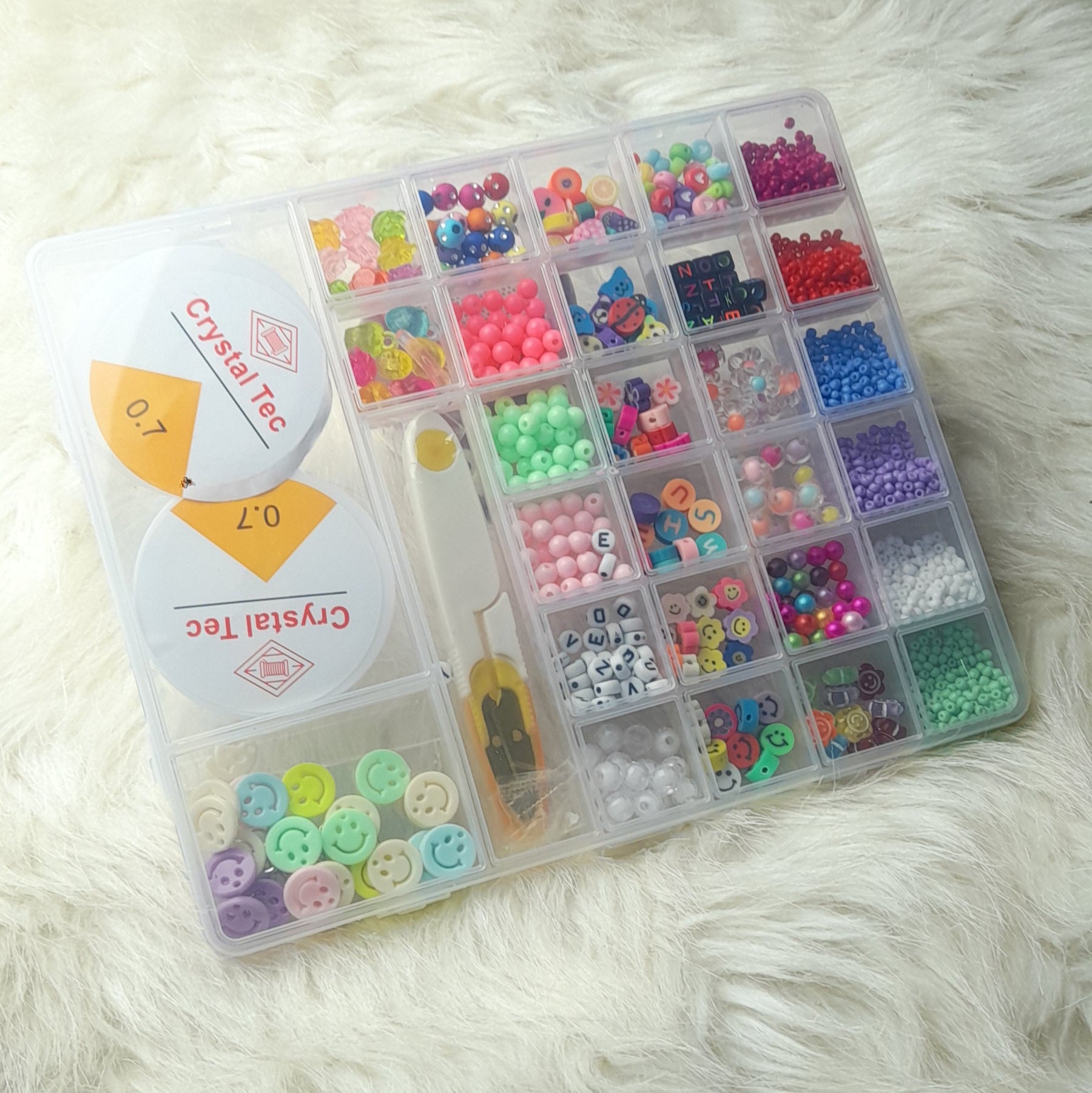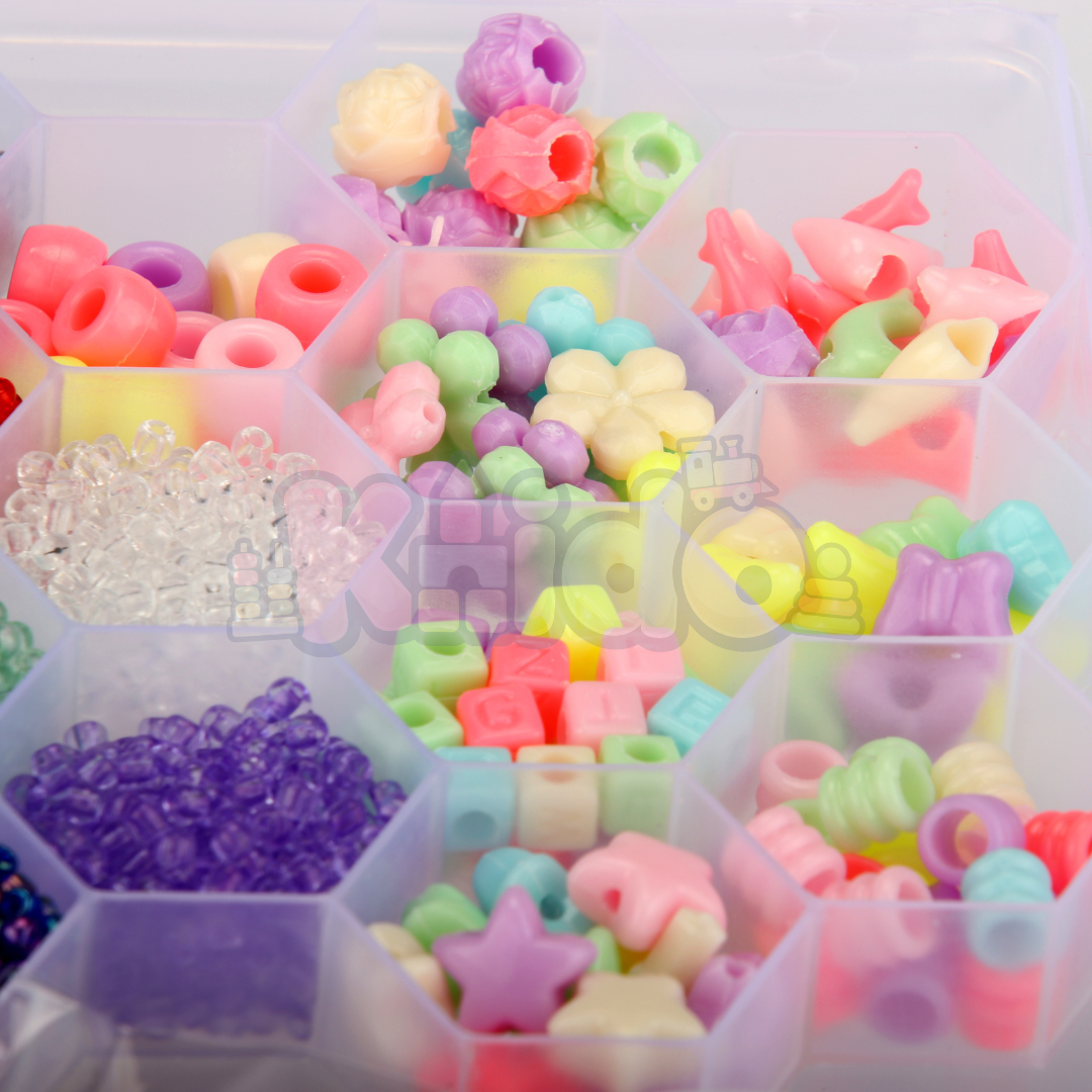 🌟 Perles Variées : Des perles trouées de différentes tailles et formes, y compris des étoiles, des papillons, des fleurs et des dauphins, pour des créations uniques à chaque fois.
