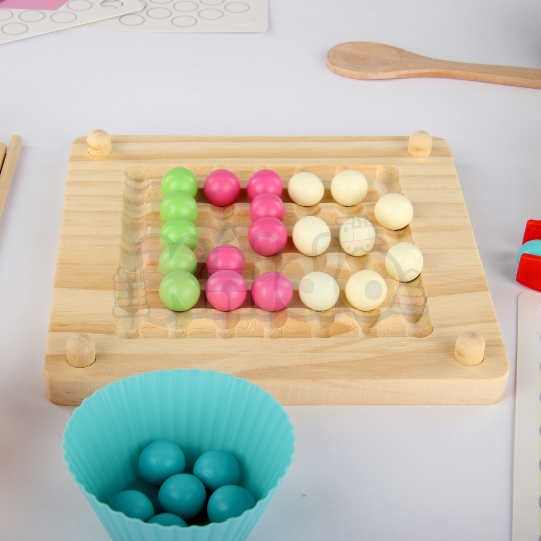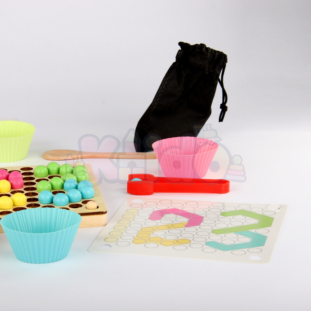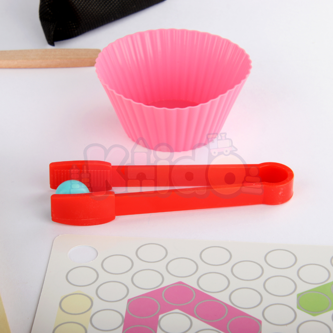 🔍 Développement de la Motricité Fine : Utilisez la pince pour attraper habilement les billes et les placer dans les caissettes appropriées, aidant ainsi à renforcer la coordination main-œil et la précision des mouvements.
