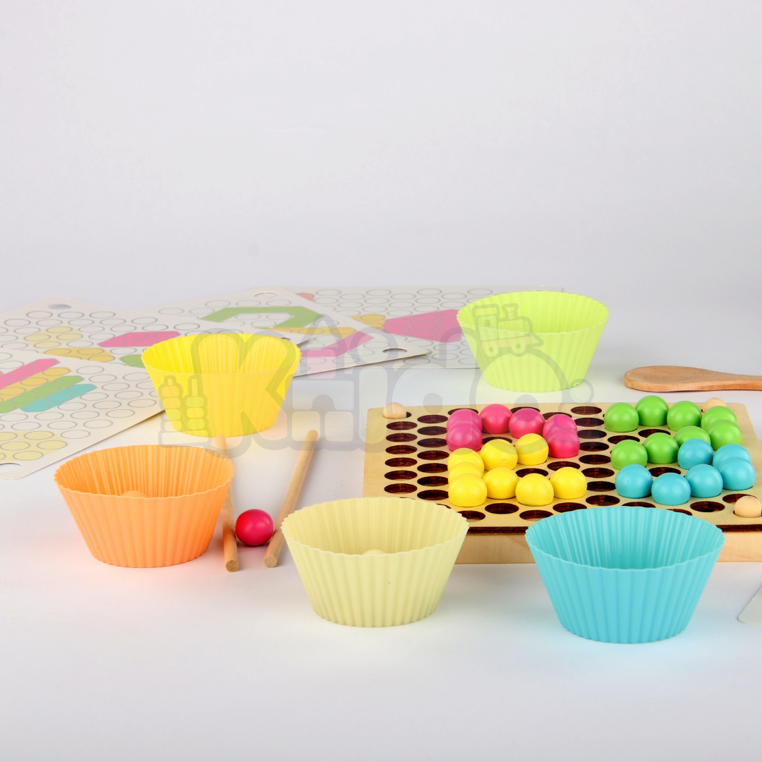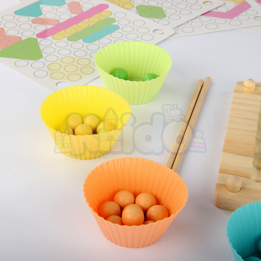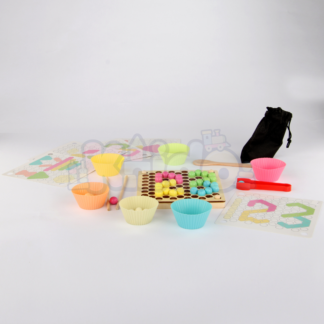 🔍 Développement de la Motricité Fine : Utilisez la pince pour attraper habilement les billes et les placer dans les caissettes appropriées, aidant ainsi à renforcer la coordination main-œil et la précision des mouvements.