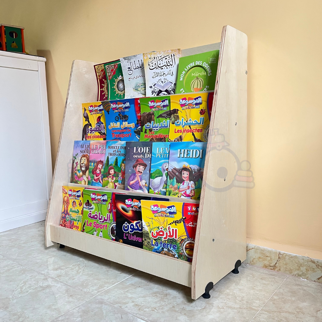 Cette bibliothèque en bois est parfaite pour organiser les livres et les histoire de vos enfant en quelques minutes. Qu'ils soit un garçon ou une fille, la bibliothèque les incite à lire et à ranger leur affaires par eux-mêmes.
