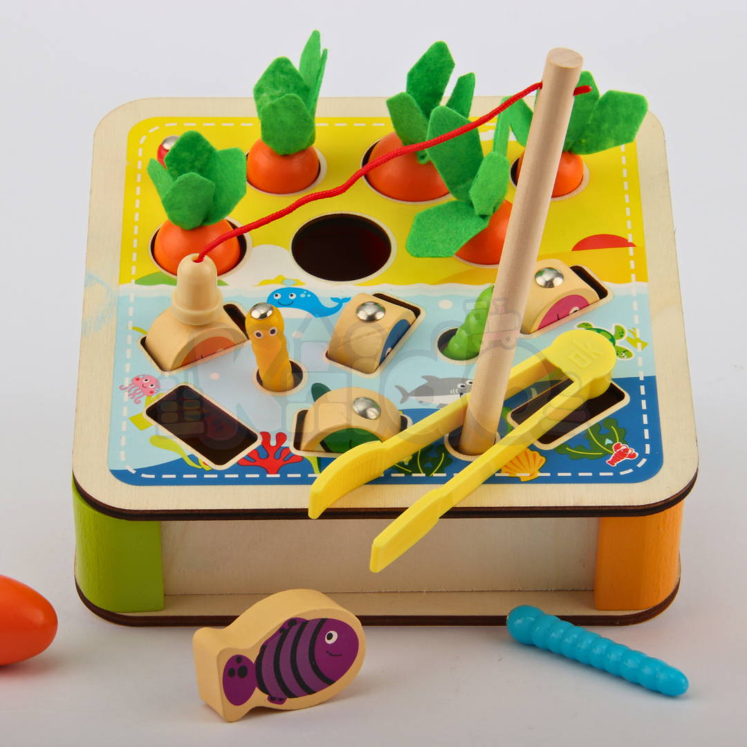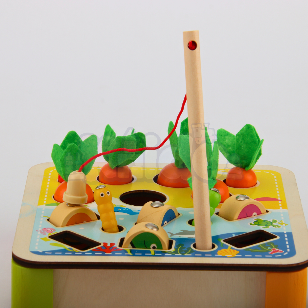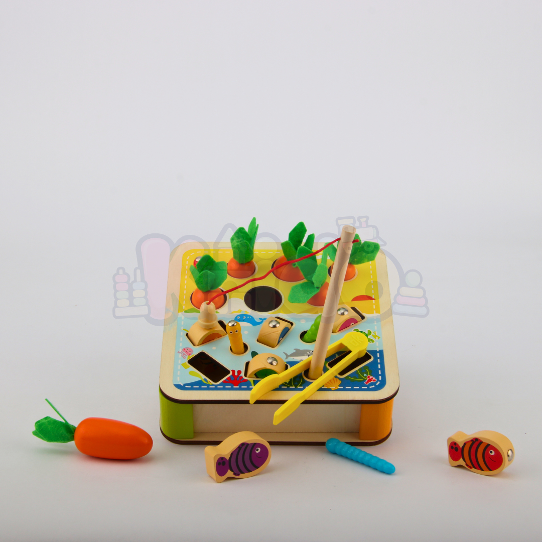 🎣 Chasse aux Trésors : Notre boîte en bois carrée regorge de surprises ! Avec ses ouvertures en différentes formes, votre enfant pourra pêcher des carottes, des poissons, des verres de terre et bien plus encore à l'aide de la canne à pêche aimantée incluse.