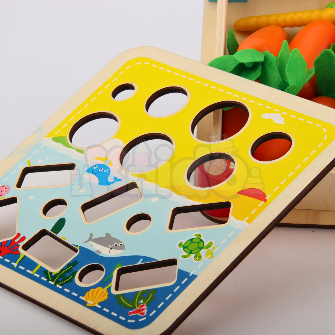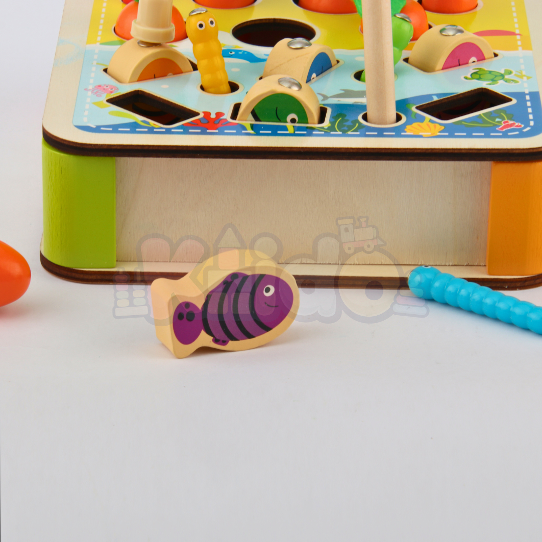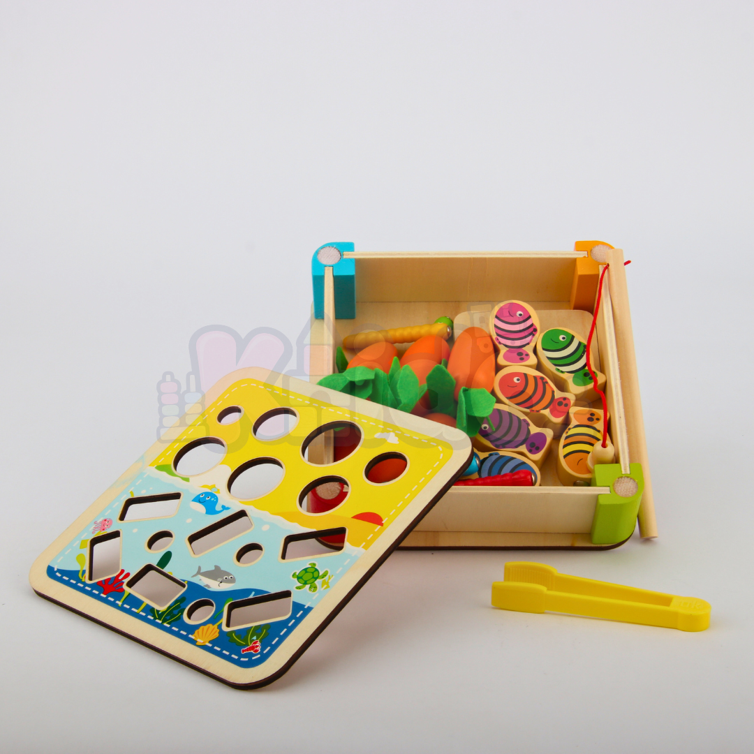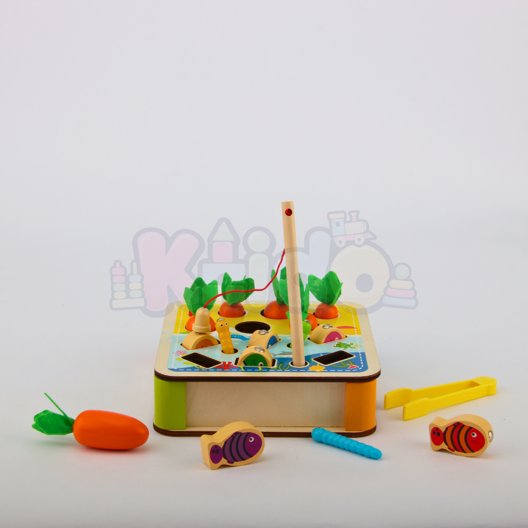 🎣 Chasse aux Trésors : Notre boîte en bois carrée regorge de surprises ! Avec ses ouvertures en différentes formes, votre enfant pourra pêcher des carottes, des poissons, des verres de terre et bien plus encore à l'aide de la canne à pêche aimantée incluse.
