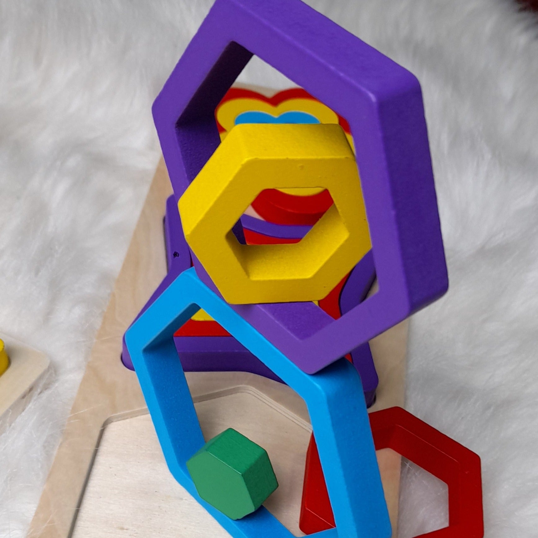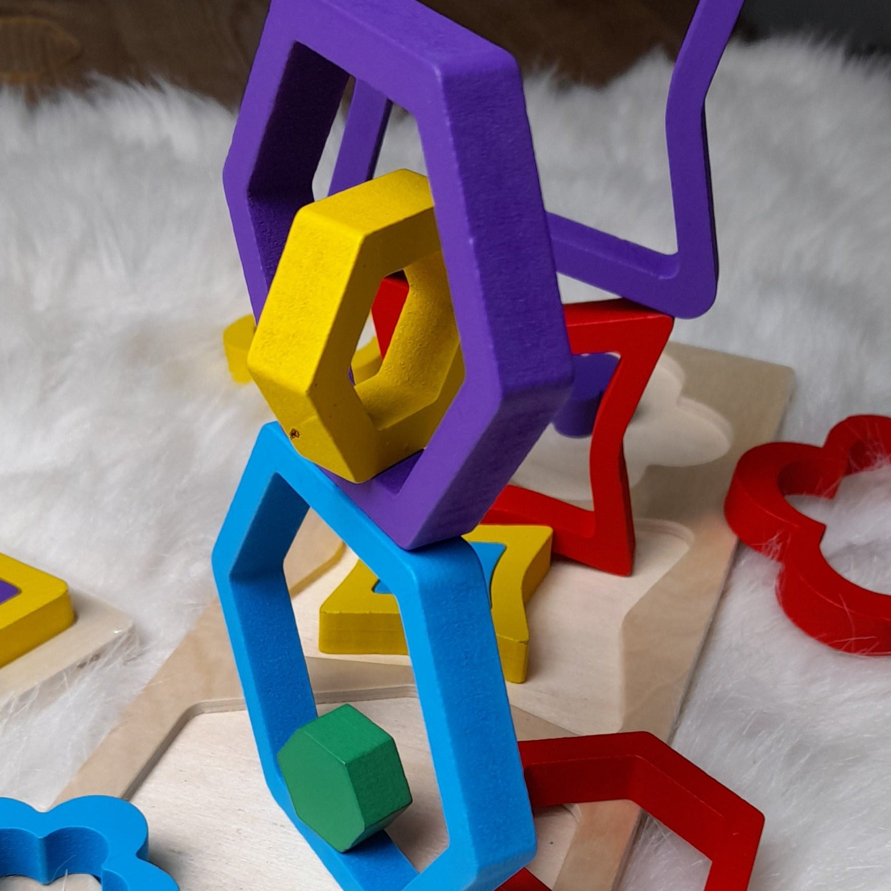 Découvrez le jeu en bois parfait pour apprendre les formes et les couleurs.