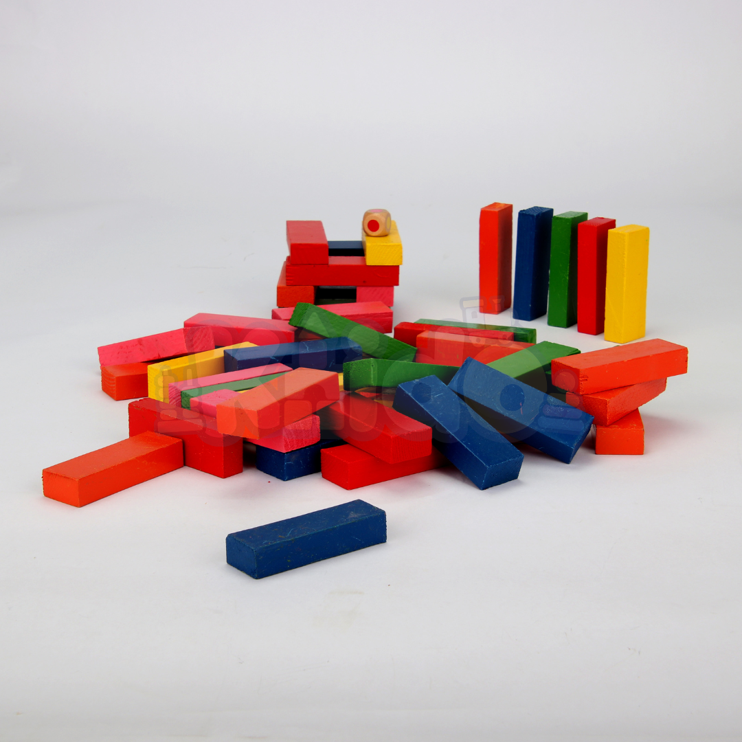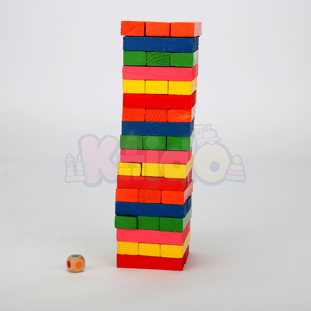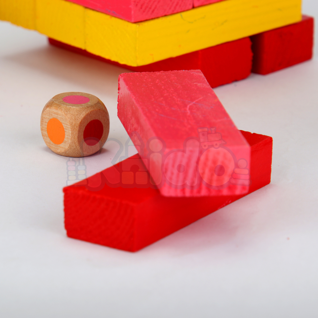 🎨 Design en Bois Coloré : Les blocs de bois sont peints dans des couleurs vives, ajoutant une touche visuelle attrayante à ce jeu classique. L'esthétique colorée rend également Jinga particulièrement attractif pour les enfants.