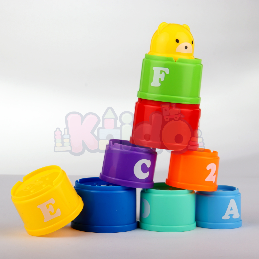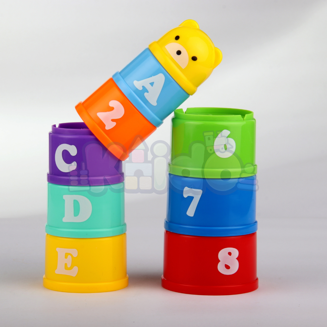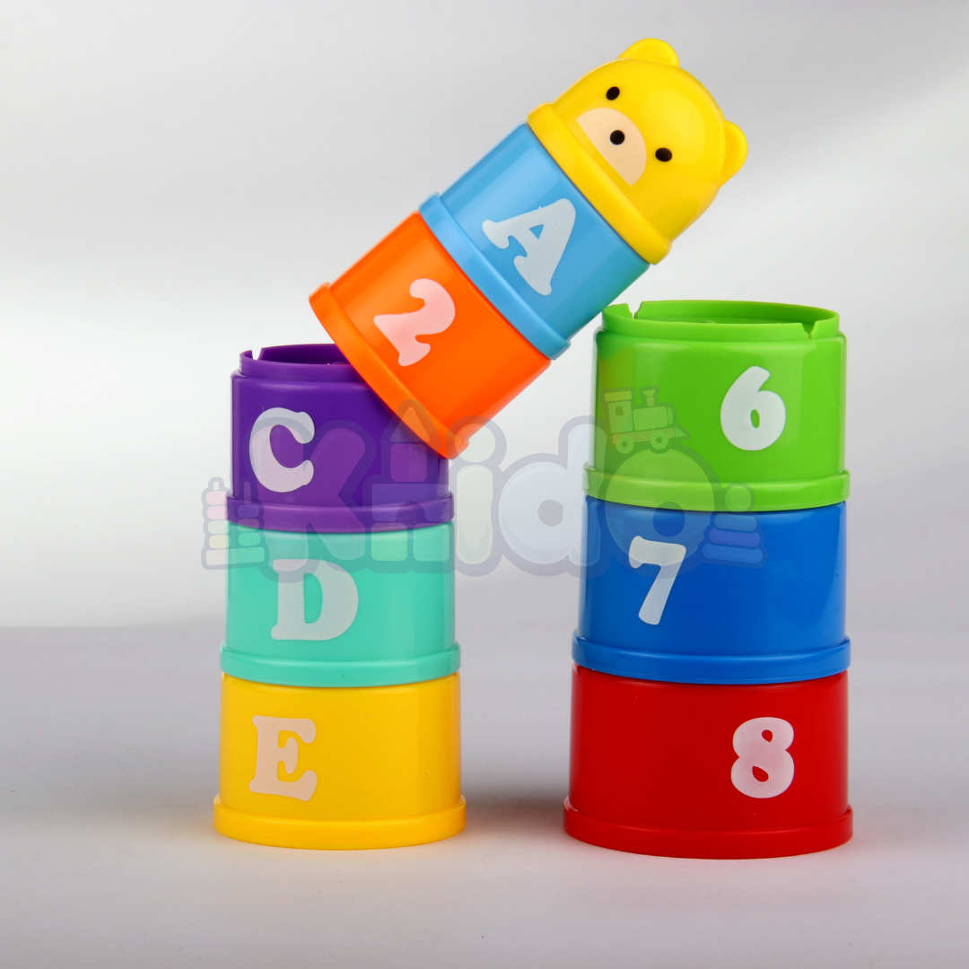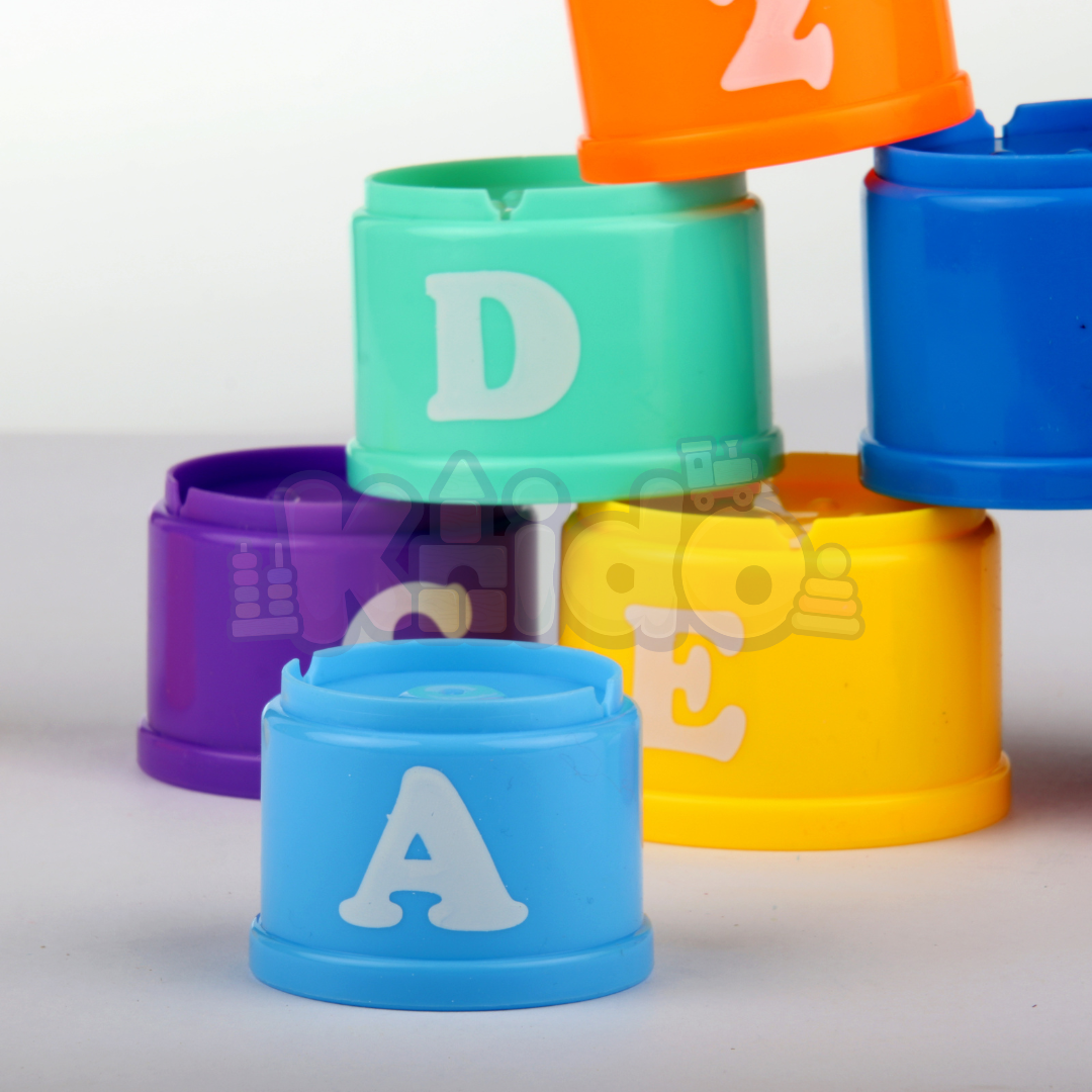 Ce jeu unique est constitué de 9 petites tasses en plastique aux tailles et couleurs variées. Chaque tasse présente d'un côté une lettre et de l'autre un chiffre, offrant ainsi une double expérience d'apprentissage. Les enfants sont invités à assembler les tasses les unes au-dessus des autres, suivant l'ordre des lettres ou des chiffres selon leurs préférences.
