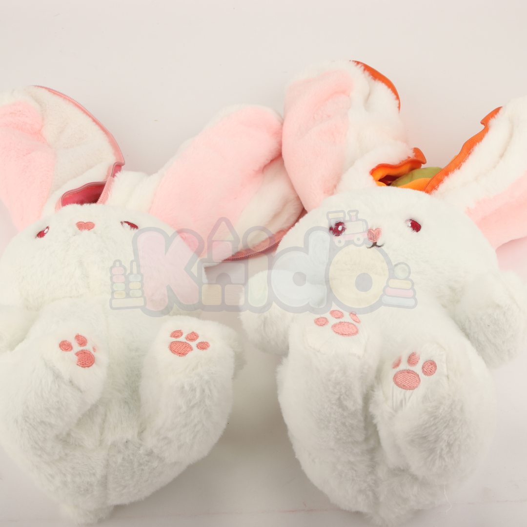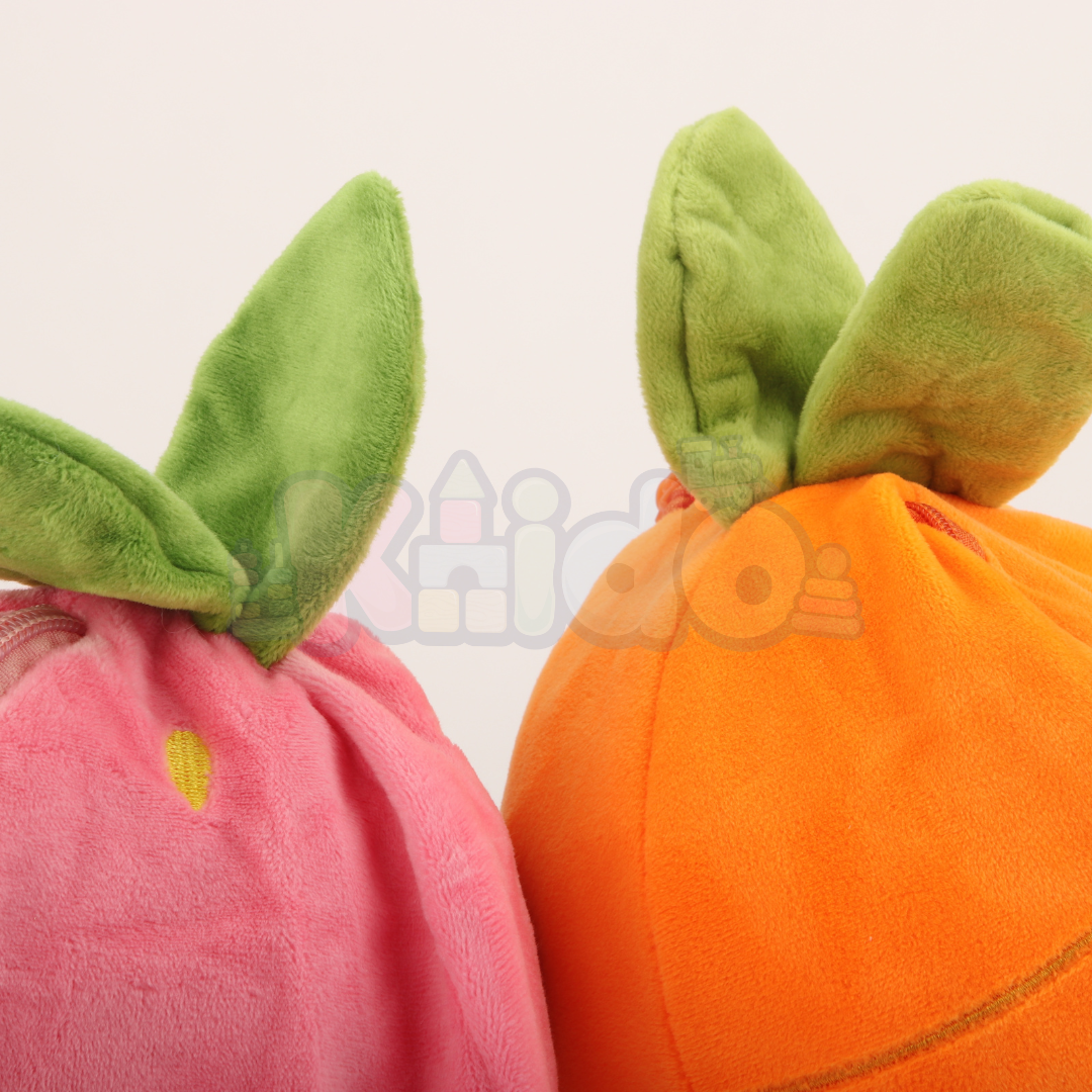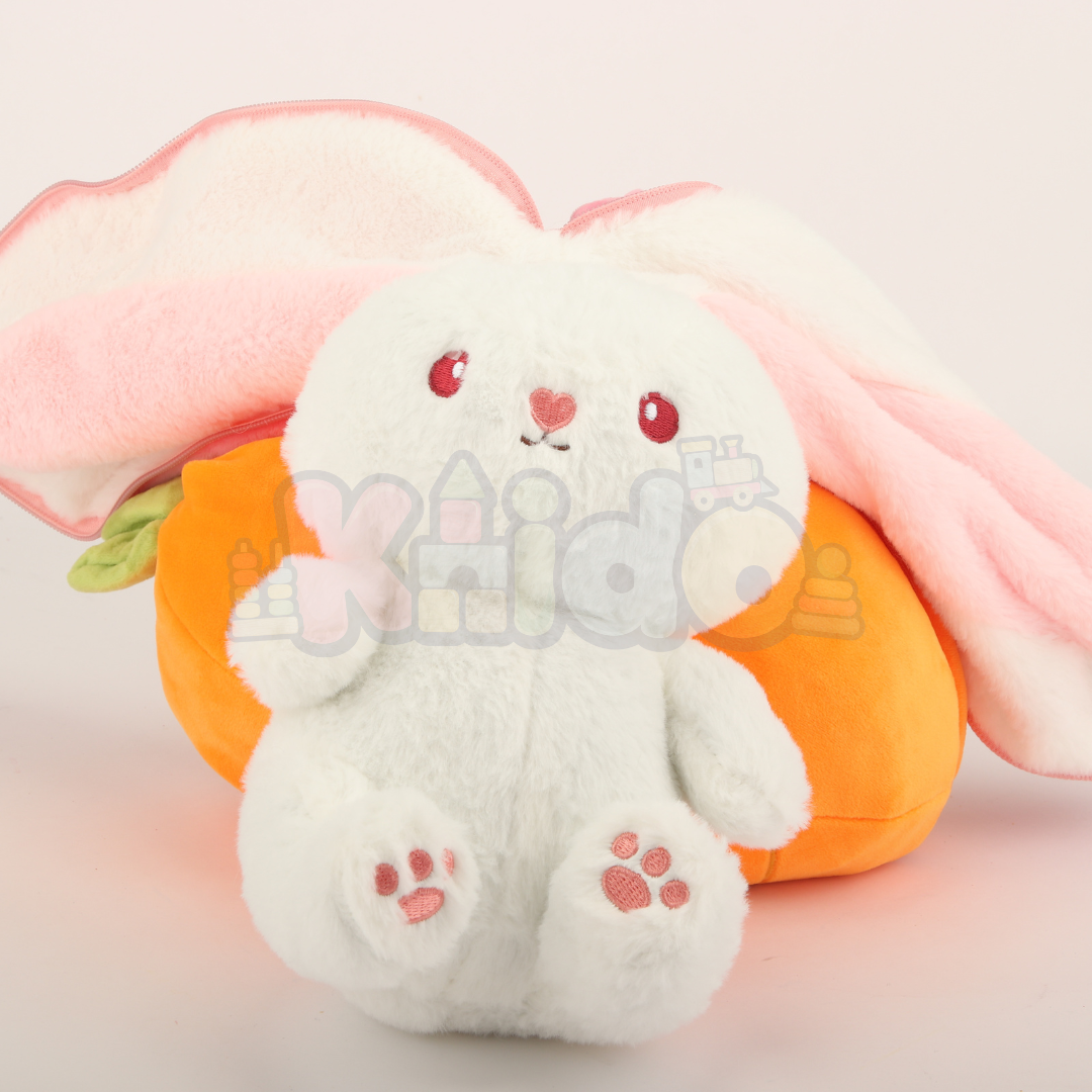 Grâce à ses oreilles de grande taille équipées d'une fermeture éclair, le petit lapin tout mignon peut se cacher entièrement pour former une carotte ou une fraise, que votre enfant va adorer prendre dans ses déplacements !
