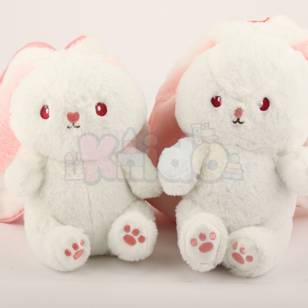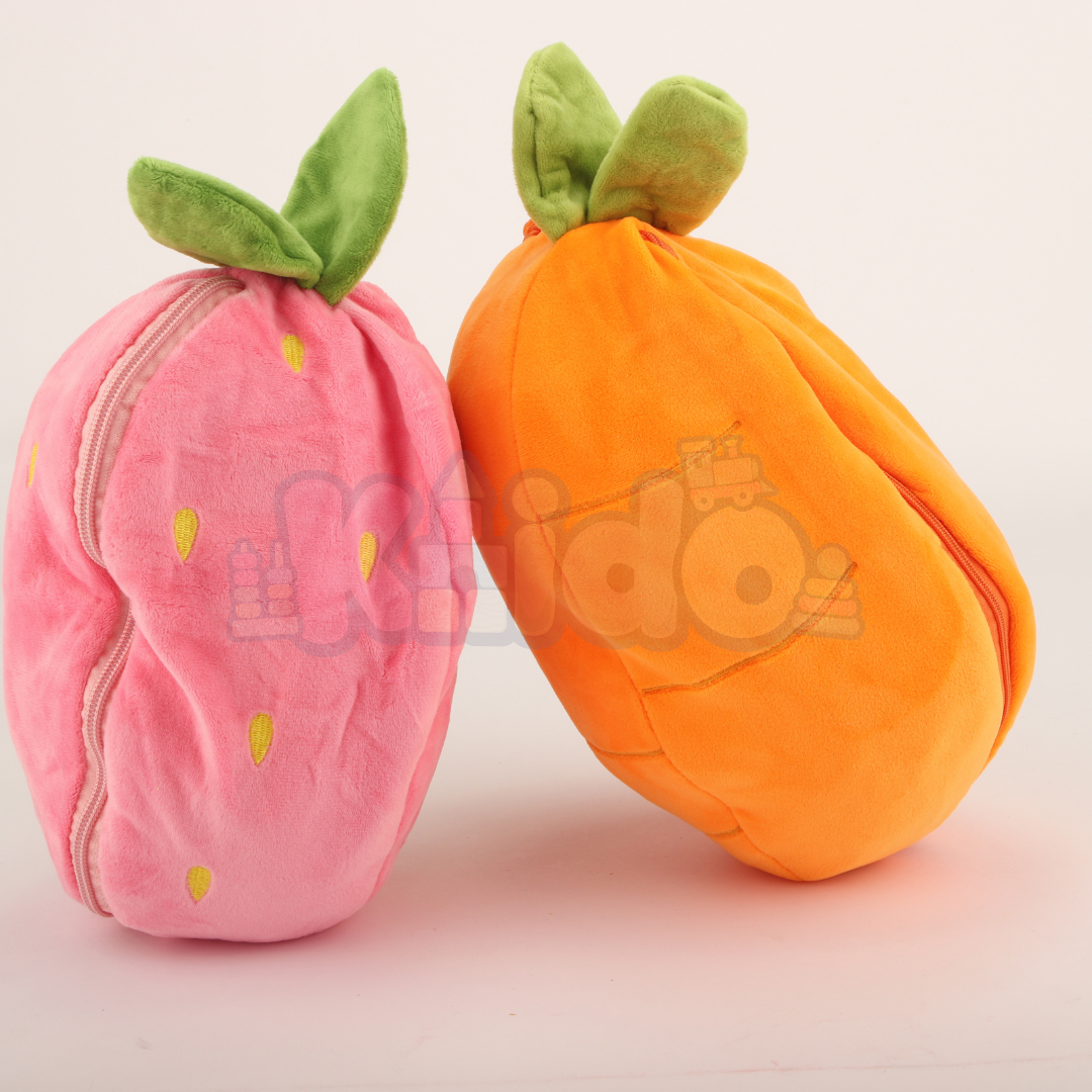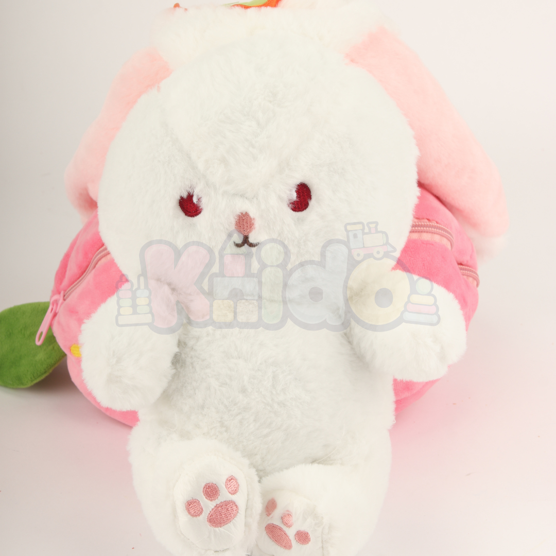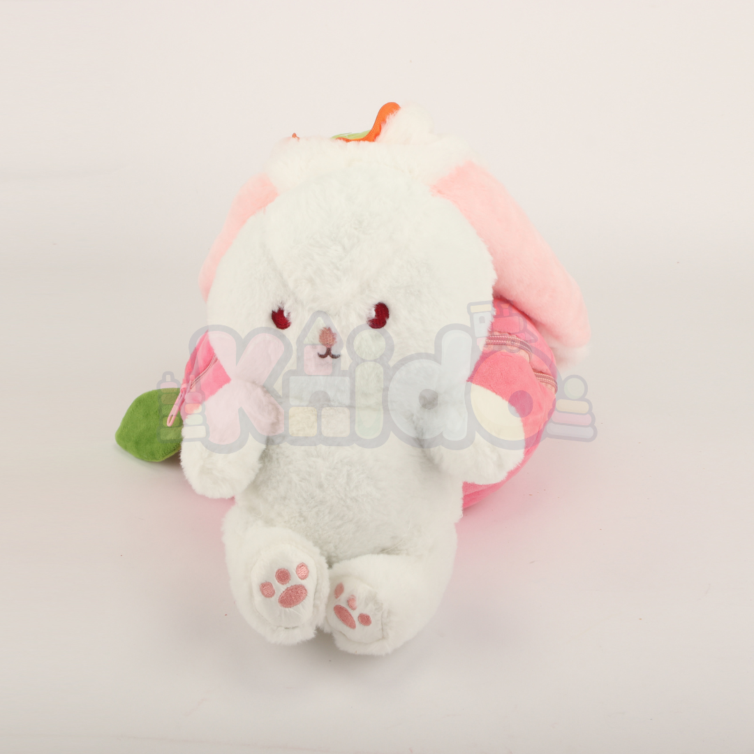 Grâce à ses oreilles de grande taille équipées d'une fermeture éclair, le petit lapin tout mignon peut se cacher entièrement pour former une carotte ou une fraise, que votre enfant va adorer prendre dans ses déplacements !