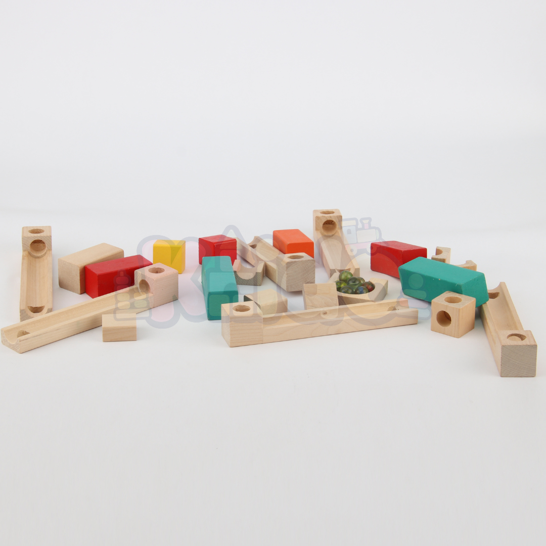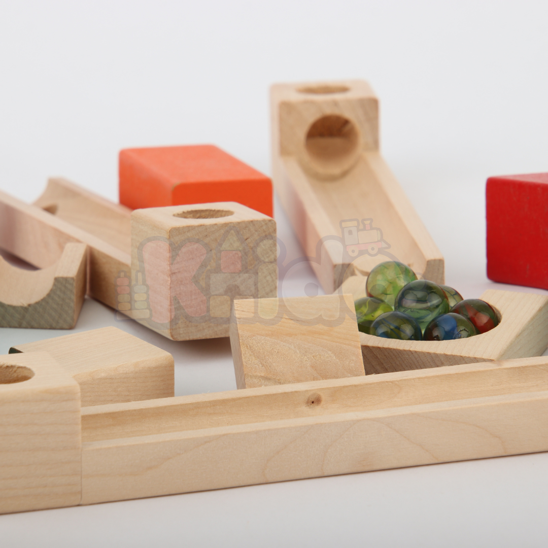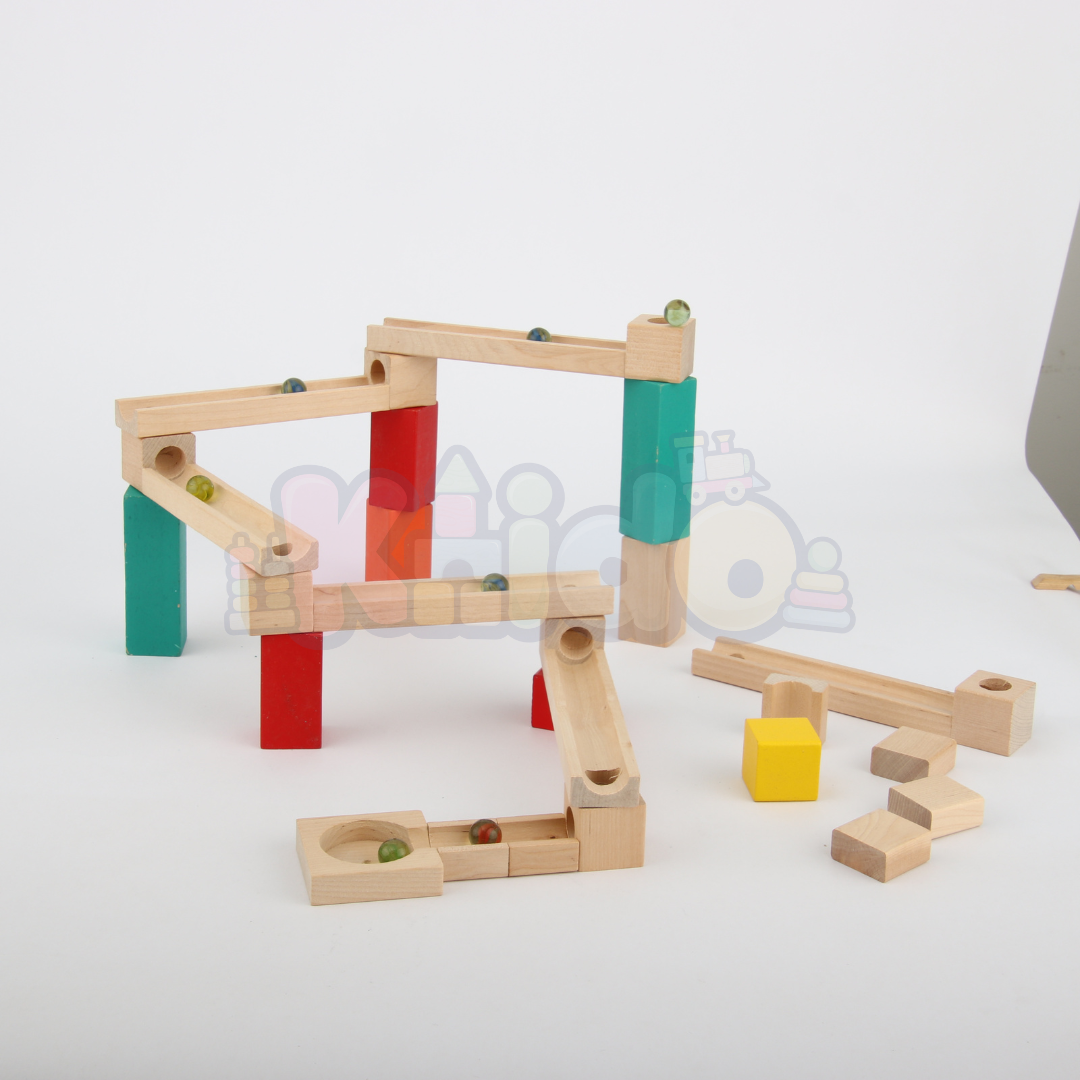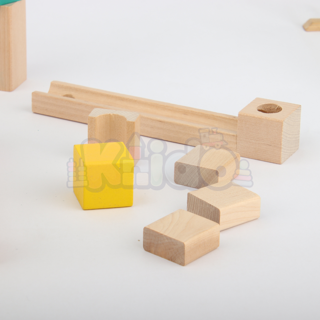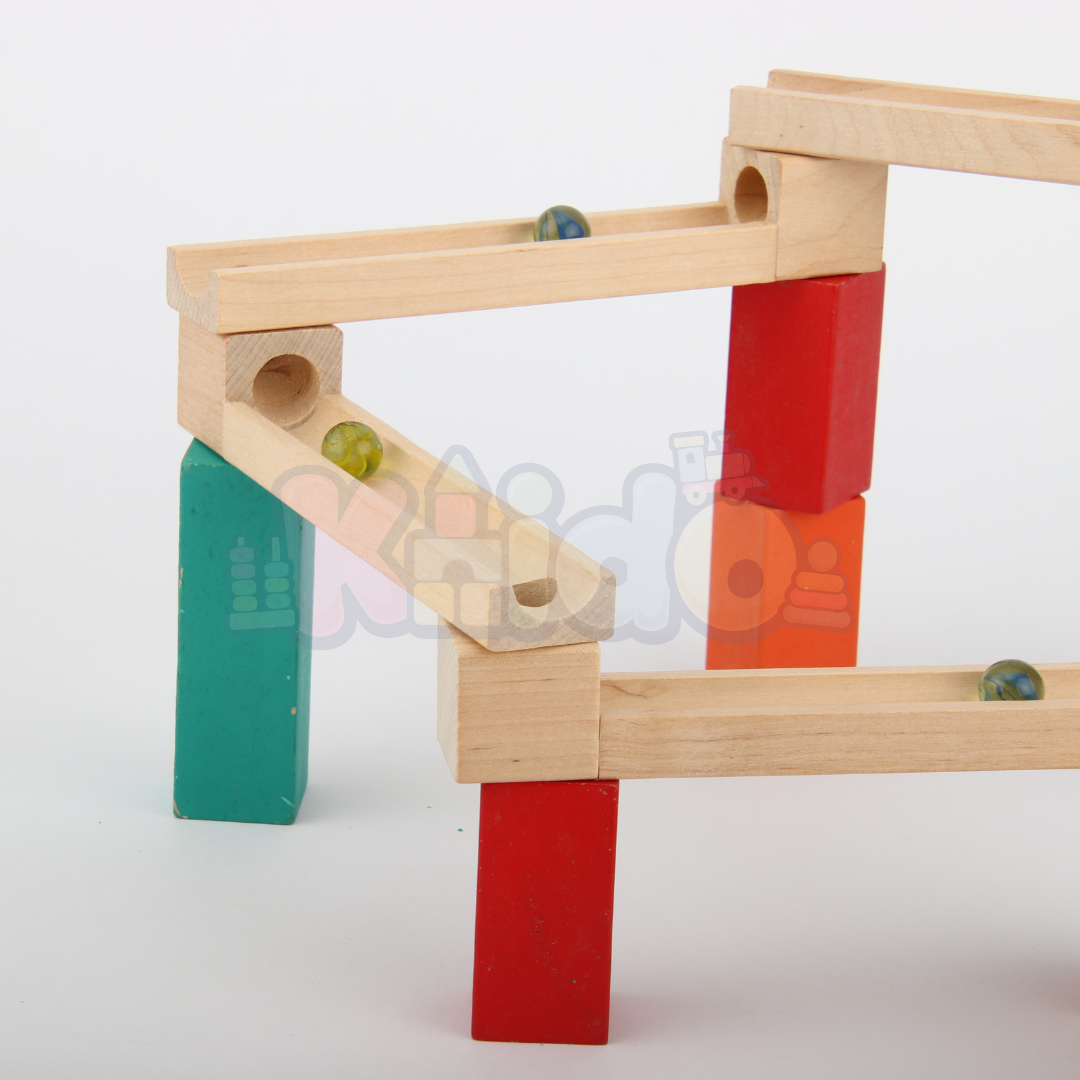 🔨 Construire et Créer : Avec ses colonnes en bois et ses billes, ce jeu permet à votre enfant de construire une structure unique. Il doit faire preuve de créativité pour concevoir un parcours astucieux où les billes pourront dévaler les canalisations jusqu'à leur destination finale.