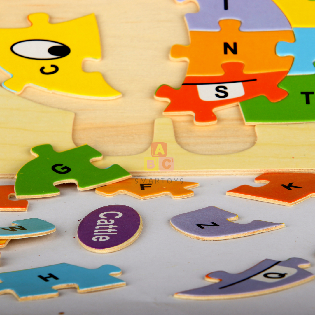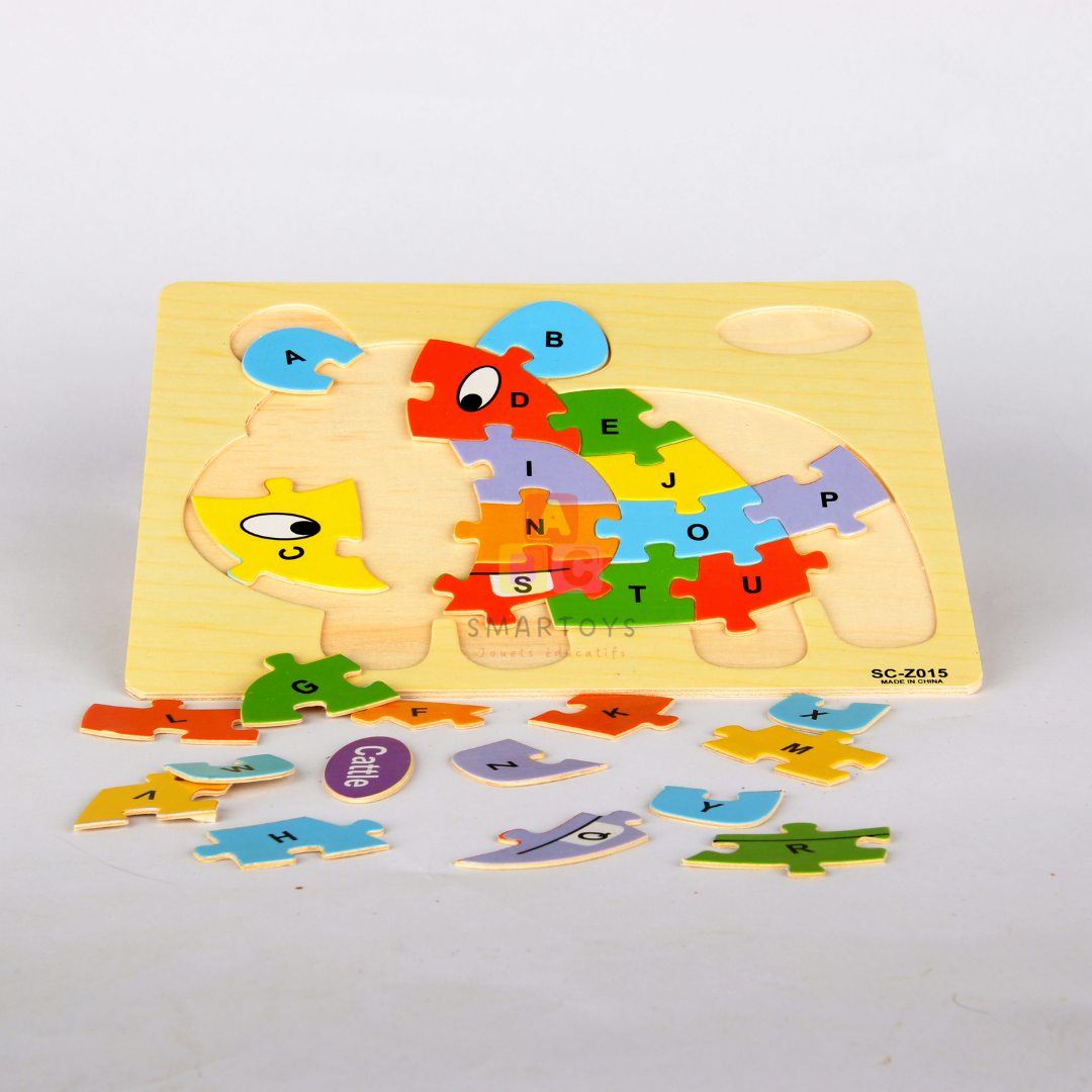 Explorez le monde de l'alphabet et des formes avec notre puzzle éducatif en bois, conçu pour stimuler l'apprentissage précoce et encourager l'imagination des enfants !