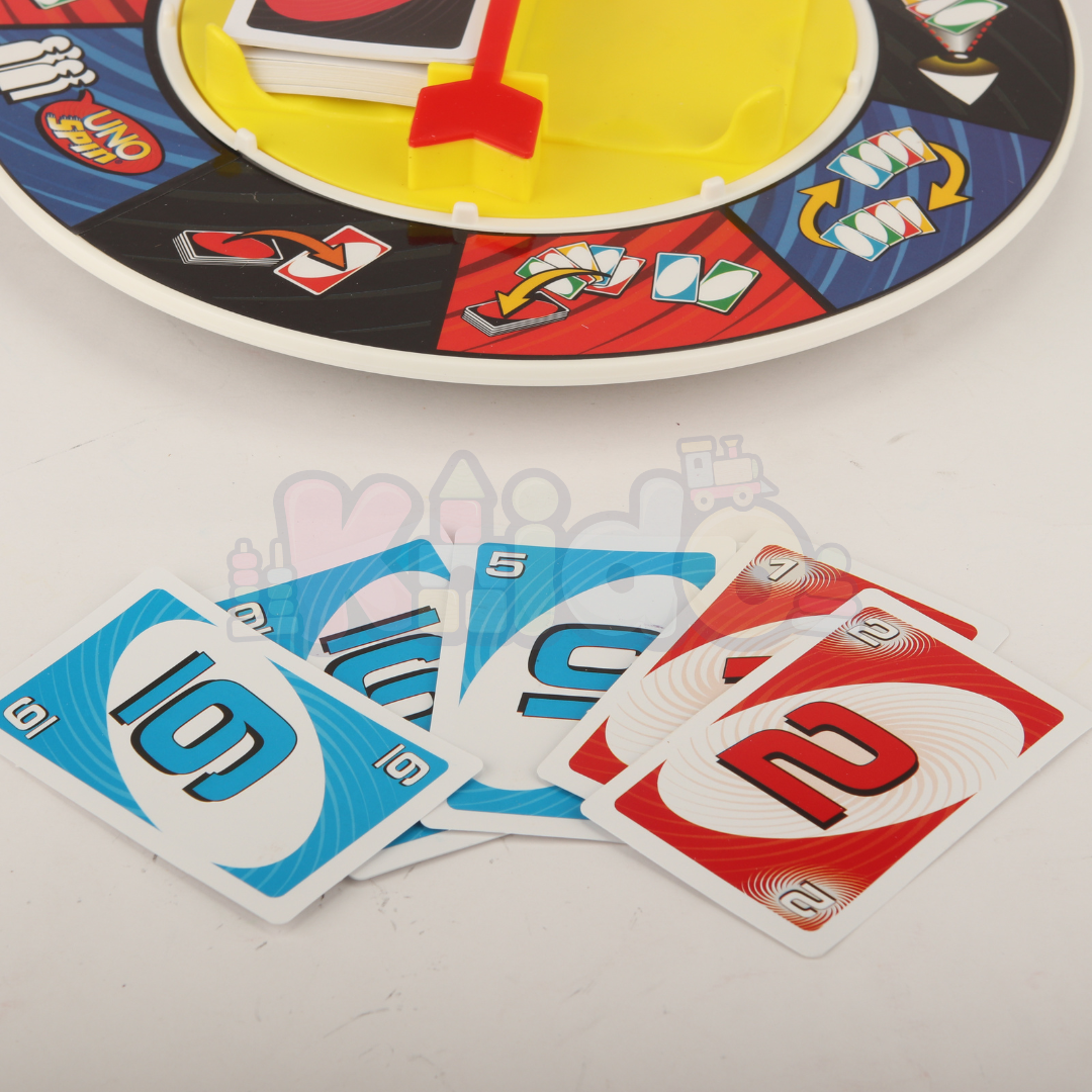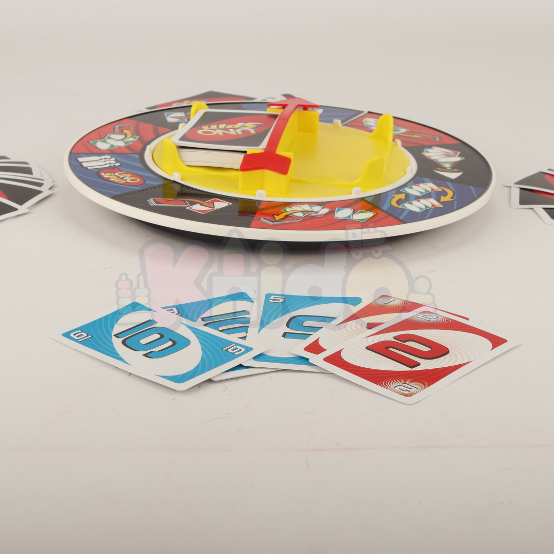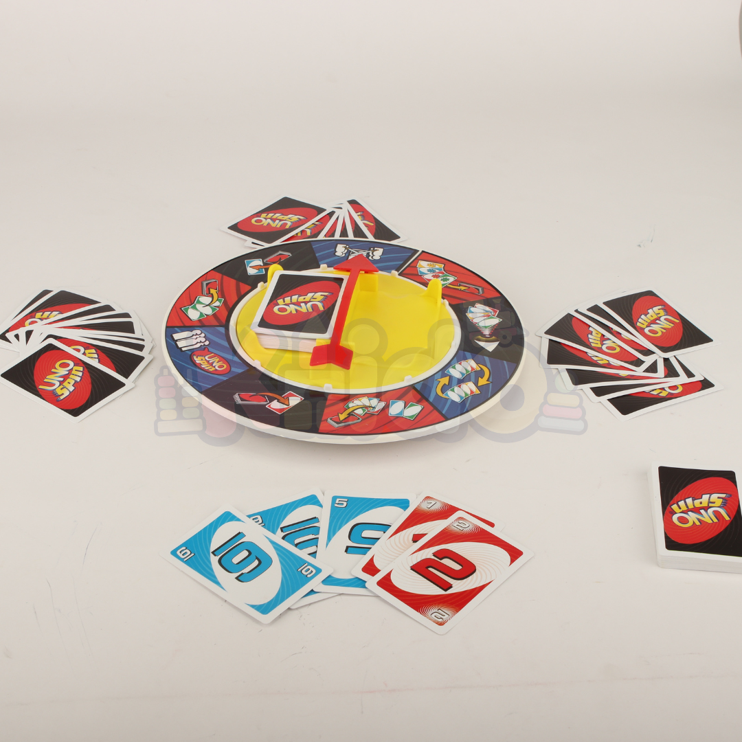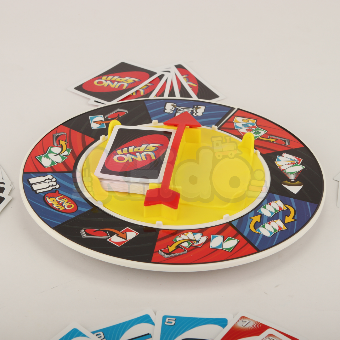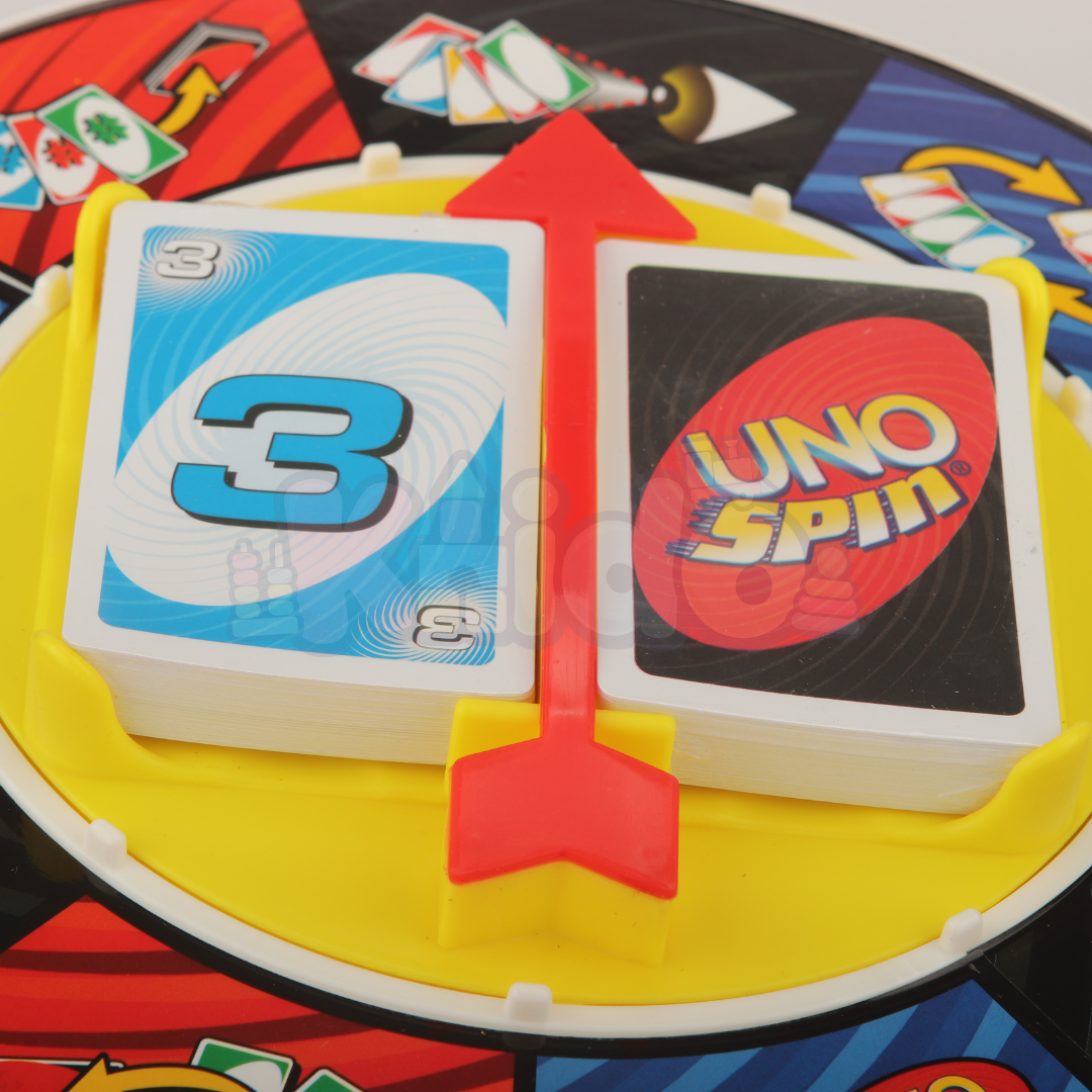UNO Spin est une version dynamique et excitante du jeu de carte emblématique UNO, intégrant une roue pivotante pour ajouter de nouvelles dimensions et des rebondissement inattendus.